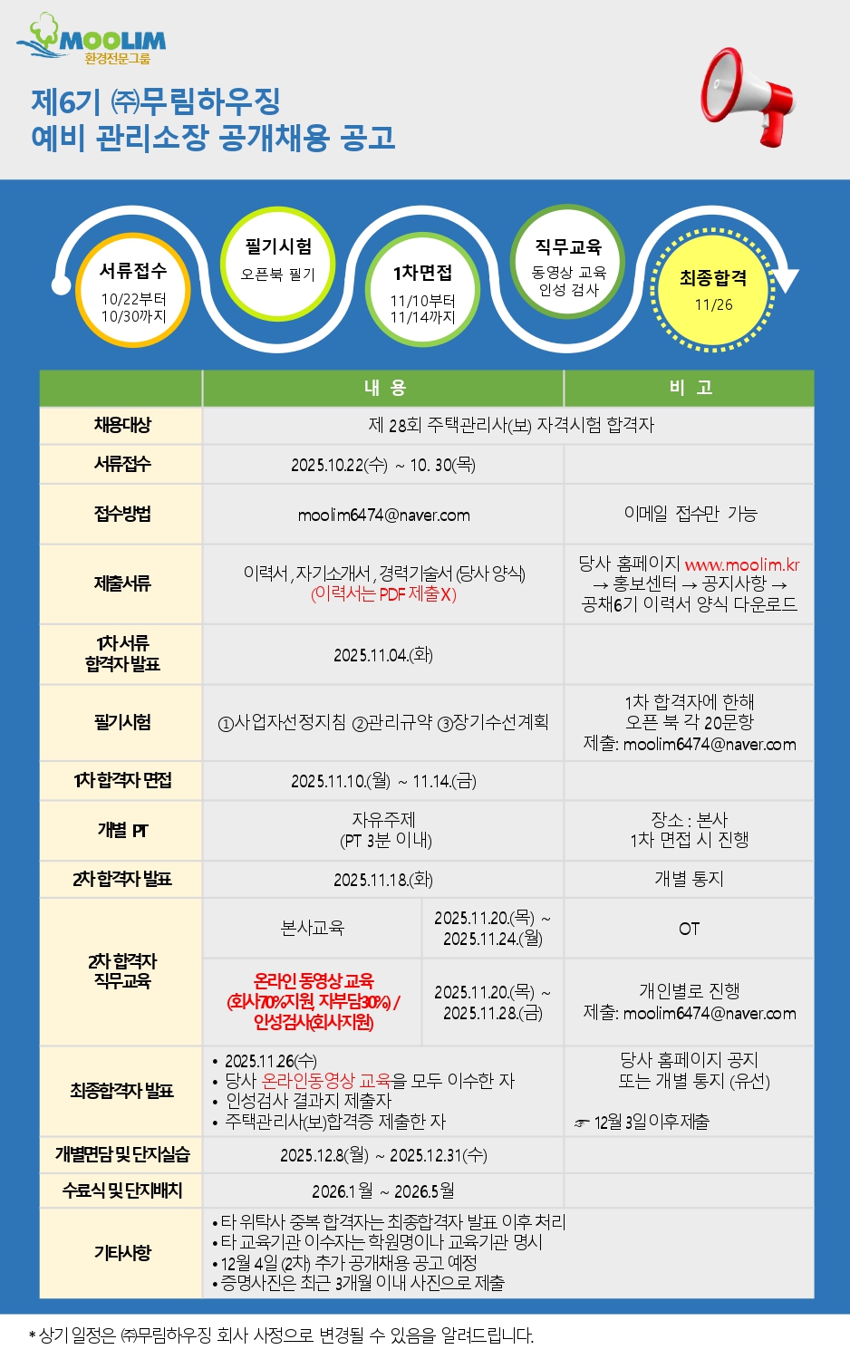 제6기 ㈜무림하우징 예비 관리소장 공개채용 공고